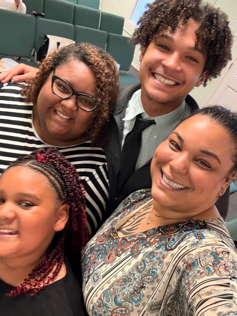 Assistant Pastor Lina Brown captured the moment with an “usie” alongside Apostle Sharlotte Coffield, Overseer Tiffany Carson, and Pastor Marion Carson Sr. during Sunday Service check-in and greeting time — smiles, love, and Kingdom family! πππ½